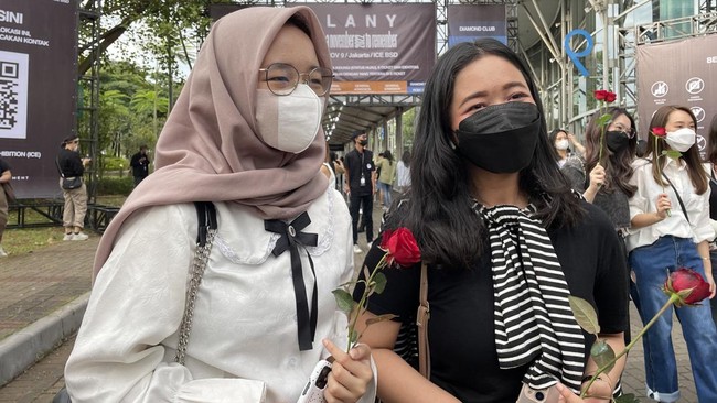 Penggemar yang datang banyak menggunakan atribut, salah satunya membawa bunga mawar. "Tapi emang LANY ciri khasnya ini (bunga mawar) jadi kita benar-benar nyiapin," ujar salah satu penggemar bernama Valen saat berbincang dengan detikcom.