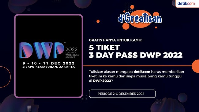 Sejak awal Desember 22022, detikcom menggelar kuis dengan hadiah tiket gratis Djakarta Warehouse Project (DWP) 2022. Kamu sudah ikutan?
