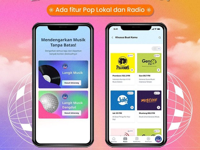 Langit Musik juga menghadirkan fitur terbaru seperti FM Radio streaming dan juga live podcast.