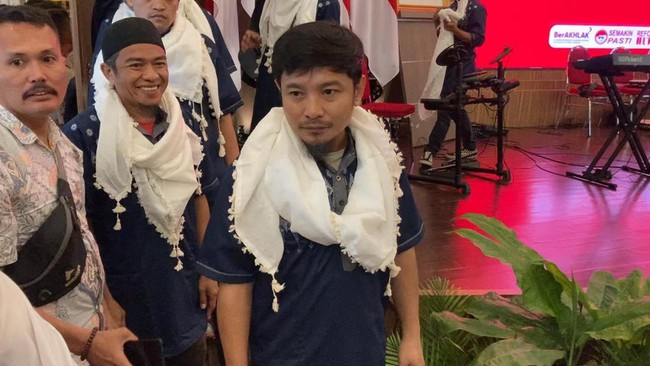 Zul Zivilia kala itu tampil bersama rekan satu bandnya. Ia tampak kompak bersama personel lainnya menggunakan pakaian muslim berwarna biru tua dengan sorban putih di leher.