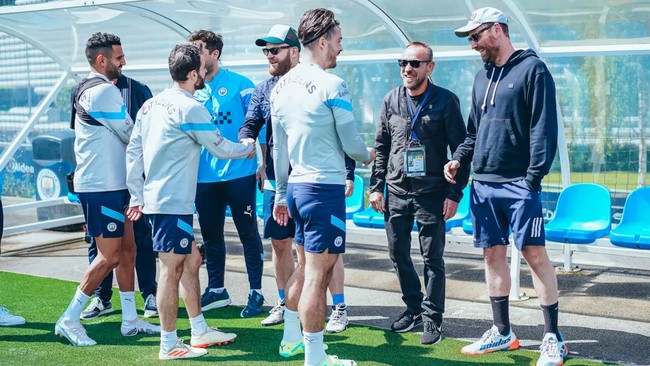 Mereka tampak bersalaman dengan beberapa pemain dari Manchester City, salah satunya Ilkay Gundogan.