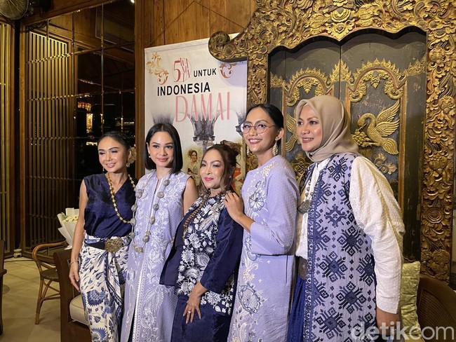 "Syair, lagu yang kuat, rasa bangga, dan cinta Indonesia serta ajakan untuk merawat perdamaian ini sangat mengena di hati kami, 5 Wanita," ujar Yuni Shara, saat jumpa pers di kawasan Dharmawangsa, Kebayoran Baru, Jakarta Selatan, Selasa (27/6/2023).