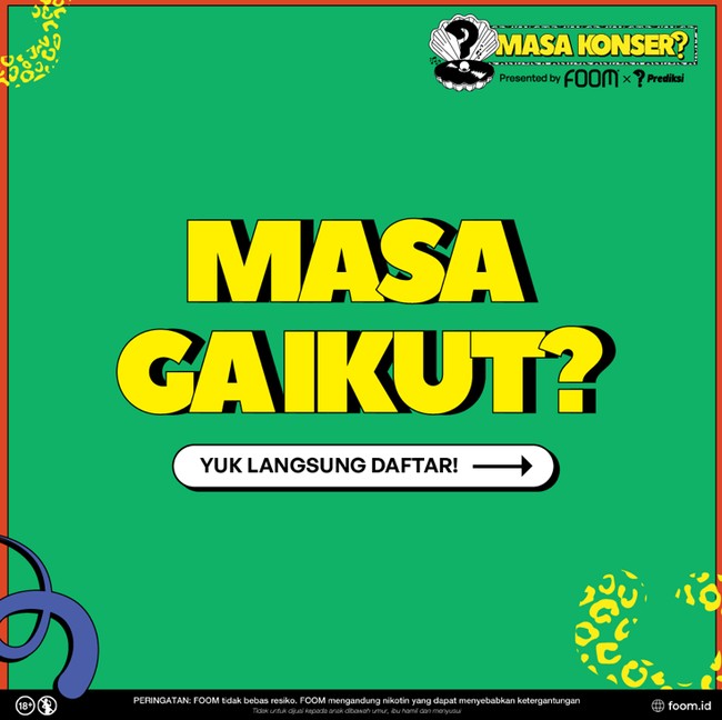 Setelah itu, Anda sudah bisa mempersiapkan diri untuk datang ke Masa Konser FOOM x The Prediksi! Masa Konser berlangsung pada hari Senin, 27 November 2023 di Bengkel SCBD.