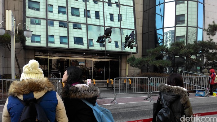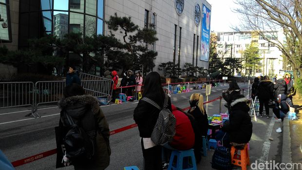 Di depan pintu masuk gedung KBS di Yeouido, Seoul, Korea Selatan pada Jumat (4/11/2015), detikHOT berdiri bersama puluhan fansite eonni dan oppa dari berbagai artis KPop yang hadir di 'Music Bank' hari ini. Di antaranya adalah fansite BTS, Up10tion, B.A.P dan tentu saja yang baru comeback hari ini TaeTiSeo (Taeyeon, Tiffany, Seohyun 'SNSD').