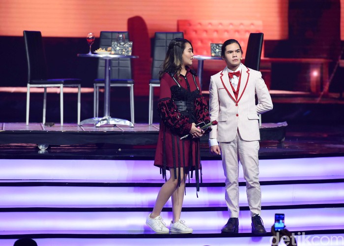 Keduanya didapuk sebagai rekan duet pada malam itu.Β Pool/Noel/detikFoto.