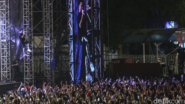 Jakarta - Pedangdut Nassar jadi salah satu yang ditunggu penampilannya di Pestapora. Benar saja, ia tampil maksimal hingga panjat panggung.
