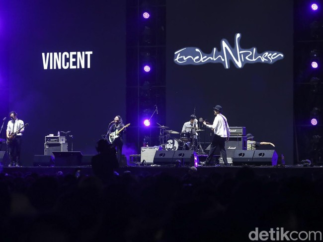 Jakarta - Endah N Rhesa bareng Trio Kurnia (Vincent, Desta dan Andre) bikin tribute Koes Plus di Pestapora. Begini penampilan penuh gimmick mereka.