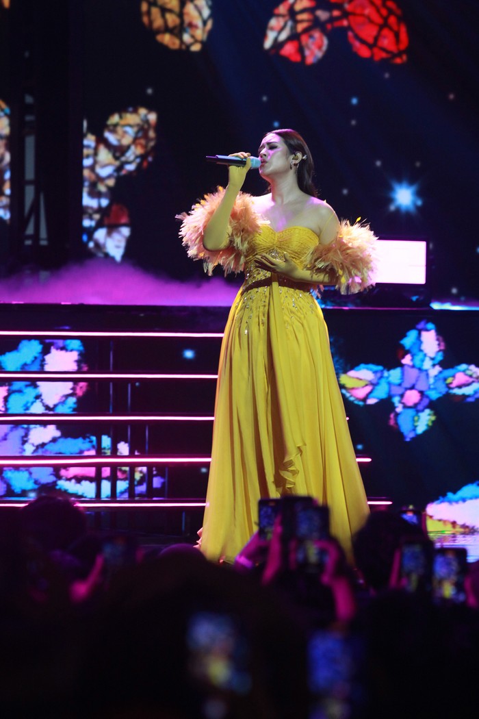 Jakarta - Raisa begitu anggun saat menjadi penampil di HUT Transmedia 21 In One. Ia bernyanyi di antara ilalang di atas panggung.