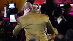 Adele yang mengaku sangat nge-fans dengan Dwayne Johnson pun akhirnya bisa bertemu sang idola di ajang tersebut.Β Chris Pizzello/Invision/AP/Chris Pizzello
