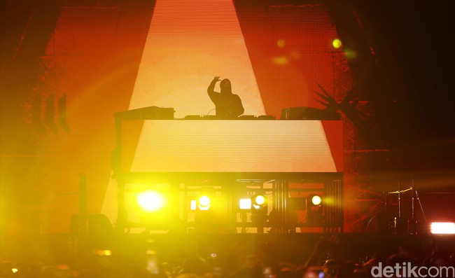 Jakarta - Ratusan penonton menyaksikan aksi DJ Alan Walker usai balapan Formula E seri 10 di Jakarta International Eprix Circuit, Jakarta Utara, Sabtu (3/6/2023).