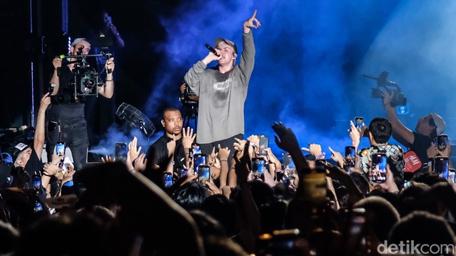 Jakarta - The Kid Laroi tampil memukau di panggung utama We The Fest (WTF) 2023 hari pertama. Rapper asal Australia ini membuat penonton histeris karena fan servicenya.