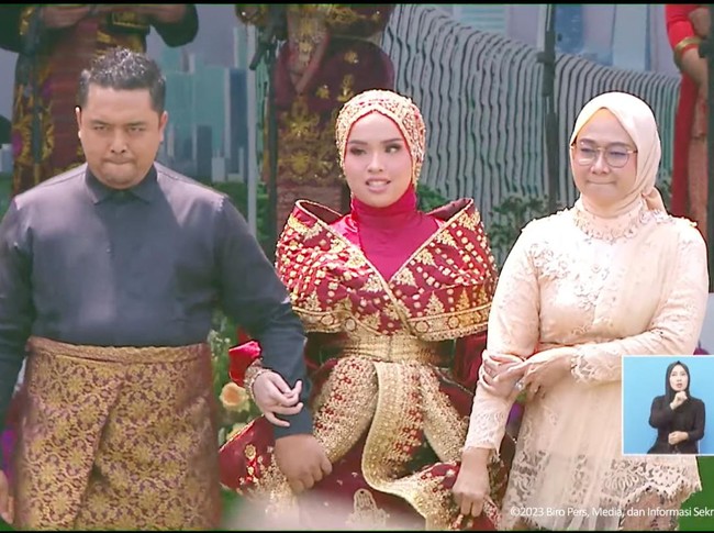 Putri Ariani berjalan ke stage dengan didampingi ayah dan ibundanya. Foto: dok. YouTube Sekretariat Presiden