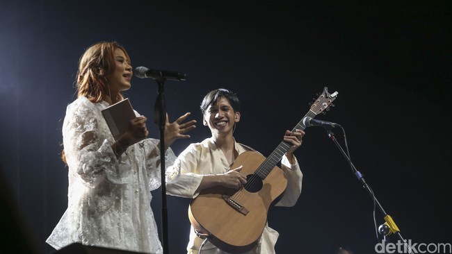 Duet Nadin Amizah dan Ananda Badudu terjadi di hari kedua gelaran Pestapora 2023 pada Sabtu (23/9/2023). (Foto: Rifkianto Nugroho/detikcom)