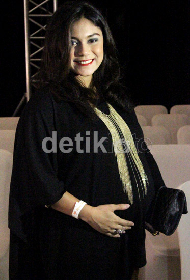 Thalita berpose dengan perut hamilnya saat ditemui di 'Bazaar Bridal Week 2012' di Ritz Carlton, Pasific Place, Jakarta, Minggu (8/4/2012). Gus Mun/detikcom.