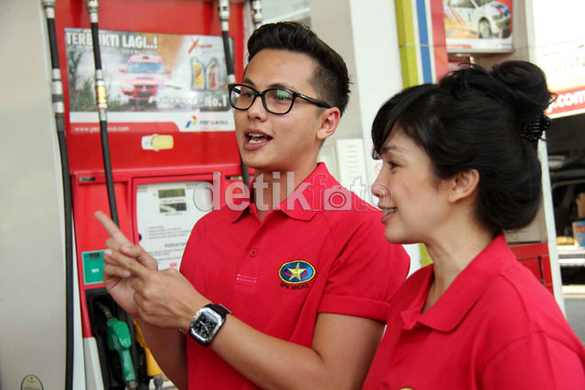 - Ada yang berbeda dari aktivitas pasangan artis Ussy Sulistiawaty dan Andhika Pratama, Sabtu (14/7/2012). Pasangan suami-istri itu terlihat sibuk melayani konsumen di pom bensin Pertamina, Kuningan Jakarta Selatan.