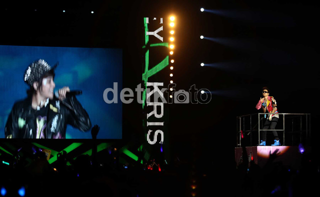 Konser Memukau SM Town Jakarta BAGIKAN URL telah disalin Aksi Key 'SHINee' saat menyanyikan lagi Far East Movement 'Like A G6'. Jessica 'SNSD' dan Krysral 'f(x)' tampil duet di atas panggung. Kakak-beradik itu sukses membuat semua penonton bernyanyi di lagu Katy Perry 'California Girls'. Jessica tampak cantik dan imut dengan dress kembang pinknya dan Krystal tampil fresh dengan busana yang bernuansa biru. Seorang penonton yang sangat beruntung ditarik ke atas panggung saat penampilan 'Just The Way You Are' Changmin 'TVXQ' dan Kyuhyun 'Super Junior'. Changmin dan Kyuhyun pun bertekuk lutut pada penonton beruntung itu. Suasana semakin ceria di lagu 'Oppa Oppa' Eunhyuk dan Donghae (EunHae) 'Super Junior'. Seperti biasa, EunHae tampil dengan kostum yang nyentrik. Donghae saat menyanyikan lagu 'Oppa Oppa' bersama Eunhyuk. Artis pendatang baru dari SME, EXO-K dan EXO-M membuat penonton (terutama penonton perempuan) histeris. Sehun cs dan Kris cs itu tampil sangat enerjik. SHINee tampil dengan busana serba hitam-putih. Onew cs itu membuka penampilan mereka dengan lagu 'Lucifer'. Penampilan enerjik EXO-K. Dibalut kostum berbulu, sang leader Taeyeon 'SNSD' tampil solo. Ia menyanyikan lagu 'Devil's Cry' yang bernuansa rock.
