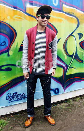 - Vidi Aldiano turut memeriahkan acara DahSyat, RCTI, Jakarta Barat, Selasa (8/1/2012). Ia terlihat santai dengan kaus motif stripe yang dipadukan dengan jaket Varsity.