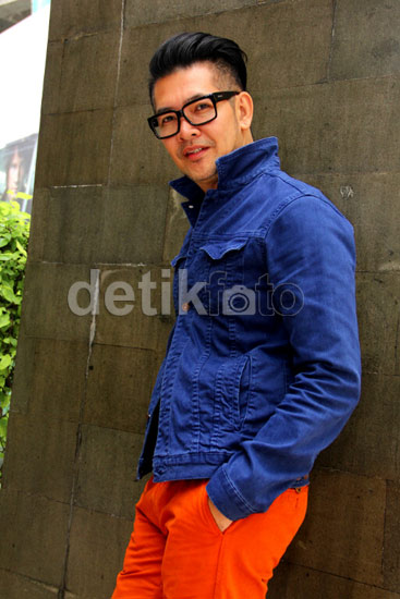 Β Β Β Β Dengan mengenakan kemeja biru dan celana oranye, Ferry Salim tampak fresh. Mauludi/detikHOT.