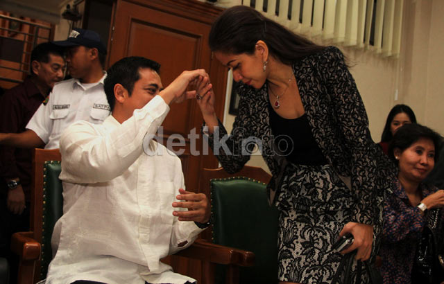 Jakarta - Venna Melinda dan sang suami Ivan Fadilla Soedjoko turut hadir di sidang gugatan cerai perdana yang digelar di Pengadilan Agama Jakarta Selatan, Senin (18/3/2013). Saat memasuki ruang sidang, Venna pun langsung mencium tangan Ivan.