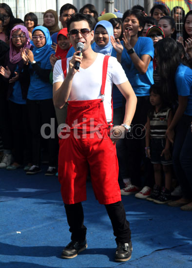 Raffi tampak mengenakan baju monyet berwarna merah. Gusmun/detikFoto.