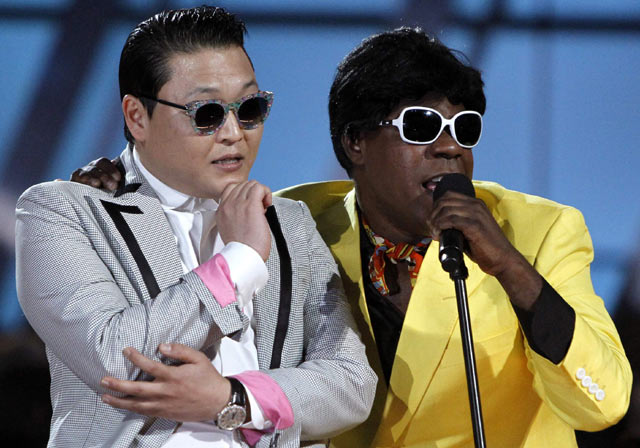 Psy Eksis di Billboard Awards 2013 BAGIKAN URL telah disalin Psy tampil mengenakan jas abu-abu, kemeja putih, dan celana hitam. Reuters/Steve Marcus. Kacamata hitam pun melengkapi gayanya. Reuters/Steve Marcus. Psy ber-'Gentleman' ria. Reuters/Steve Marcus. Host Tracy Morgan ikut menari bersama Psy. Reuters/Steve Marcus. Tracy Morgan tampil serba kuning ala Yoo Jae Suk. Reuters/Steve Marcus. Psy yang semakin mendunia. Reuters/Steve Marcus.