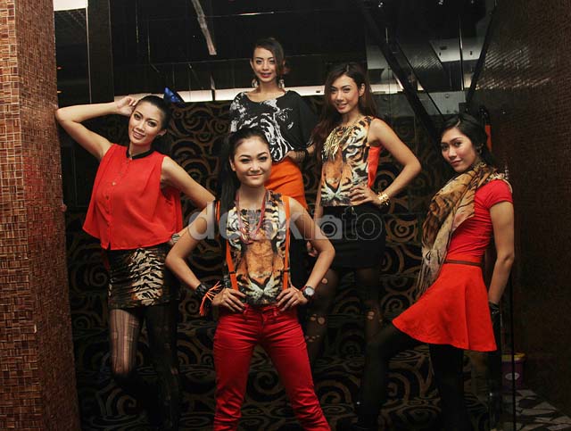 Jakarta - Girlband arahan Maia Estianty, Mannequin meluncurkan single keduanya yang berjudul 'Jangan Bilang Siapa-Siapa' di kawasan Epicentrum, Kuningan, Jakarta Selatan. Kelima personel tersebut tampil 'liar' dengan busana bermotif macan.