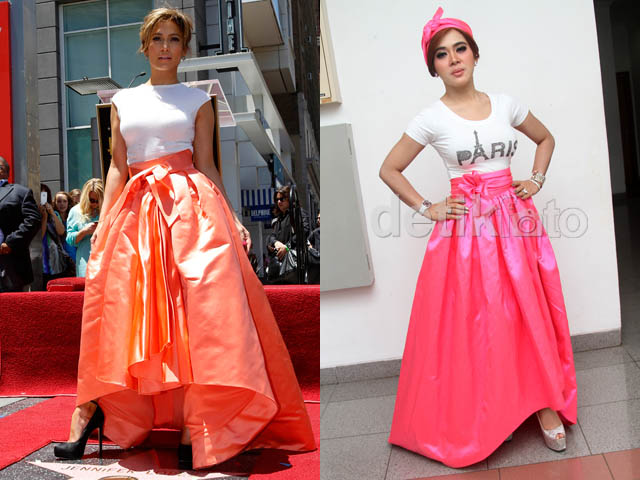 Syahrini Bergaya ala Jennifer Lopez BAGIKAN URL telah disalin Syahrini mengenakan rok berpita yang mirip dengan Jennifer Lopez. (REUTERS/Mario Anzuoni; Gus Mun/detikHOT) Syahrini manis dibalut rok dan bandana pink. Gus Mun/detikHOT. Pose Syahrini di depan kamera. Gus Mun/detikHOT. Bandana pink mempermanis gaya Syahrini. Gus Mun/detikHOT. Syahrini tersenyum manis. Gus Mun/detikHOT.