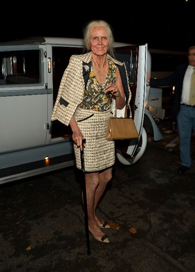 Tak hanya itu, maestro make up Bill Corso dan Mike Marino membuat penampilan Heidi Klum terlihat sungguhan lewat tulang belakang yang membungkuk, varises, dan keriput. Cindy Ord/Getty Images/AFP.