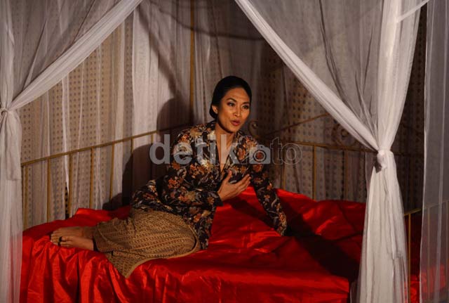 Jakarta - Artis Happy Salma mementaskan monolog yang bertajuk "Inggit" di Galeri Indonesia Kaya, Jakarta, Minggu (3/11/2013). Monolog "Inggit" bercerita tentang kehidupan Inggit Garnasih istri kedua mantan Presiden Soekarno.