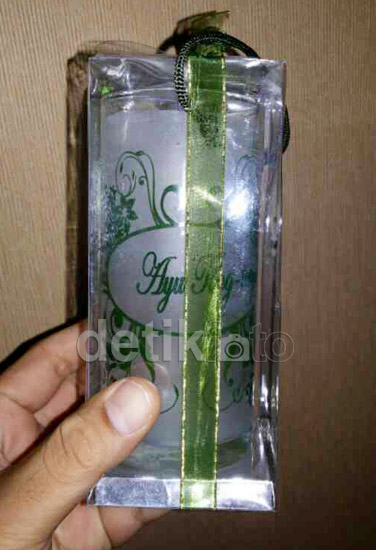 Awalnya, nama Ayu dan Enji rencananya akan tertera di gelas tersebut. Namun, karena keluarga Enji tak dapat hadir ke acara resepsi yang rencananya digelar pada 4 September lalu, Ayu pun mengubahnya menjadi nama dirinya sendiri.
