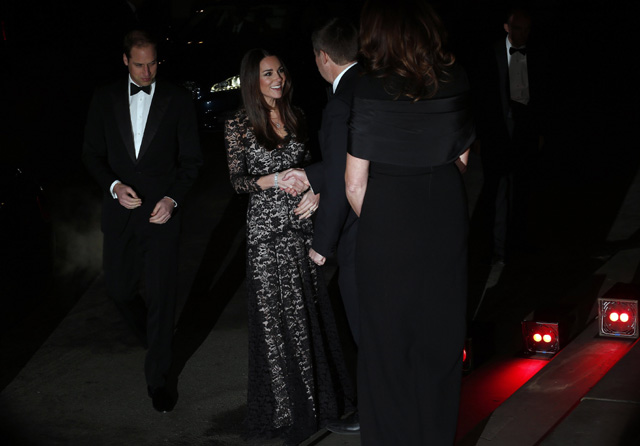 Di acara tersebut, Kate Middleton anggun bergaun lace hitam dari koleksi Temperley London, sementara Pangeran William terlihat necis lewat setelan tuxedo-nya. REUTERS/Luke MacGregor.