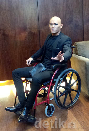 Jakarta - Deddy Corbuzier terlihat menggunakan kursi roda saat ditemui di Trans TV, Jakarta Selatan, Rabu (29/1/2014). Ia harus duduk di kursi roda karena mengalami stroke beberapa waktu lalu.