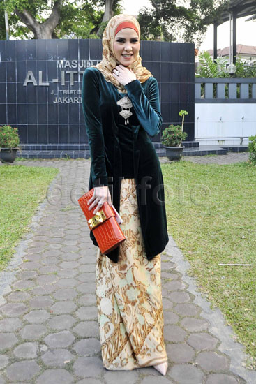 Jakarta - Penyanyi Angel Lelga mendatangi pernikahan aktor Reza Pahlevi dan Ika Nico di kawasan Tebet, Jaksel, Jumat (28/8). IOa pun ditanya kapan akan menyusul.
