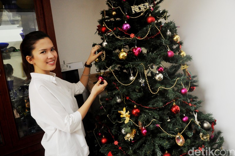 "Dari kecil kan sudah ada pohon Natal, dulu waktu kecil aku rajin menghias pohon Natal sama sepupu. Itu kan heboh banget, dulu berebutan naruh bintang di atas pohon," ujarnya. Pool/Ismail/detikFoto.