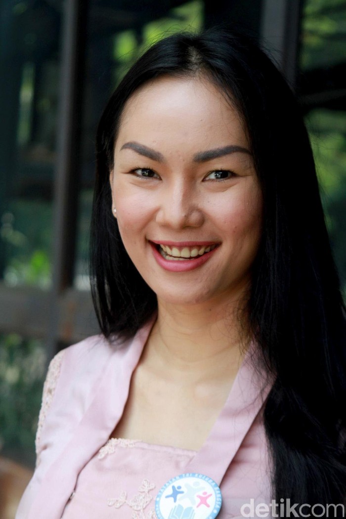 Ibu satu anak itu tampak sumringah saat di depan kamera. Pool/Gus Mun/detikFoto.