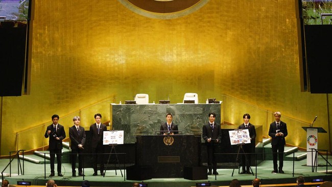 Jakarta - BTS menghadiri acara UNGA di Markas Besar PBB. Dalam acara itu BTS menyampaikan pidato tentang pandemi COVID-19, vaksin, perubahan iklim, dan generasi saat ini.