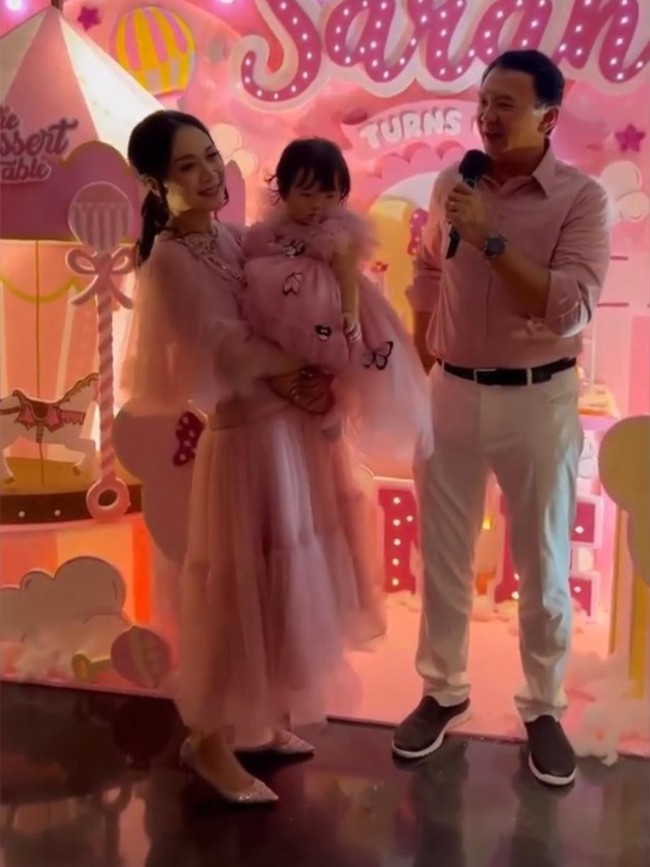 Jakarta - Sarah Eliana Purnama, anak kedua Basuki Tjahaja Purnama dan Puput Nastiti genap berusia satu tahun. Sarah terlihat menggemaskan di pesta ultahnya serba pink.