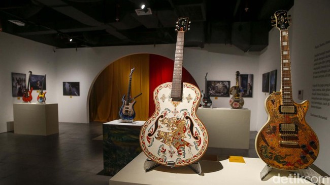Jakarta - Sebanyak 21 gitar milik Dewa Budjana dipamerkan di Gedung Sarinah Jakarta. Yuk, kita lihat.