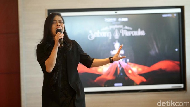 Fokalis Cokelat Kikan menyanyikan lagu yang telah diaransemen pada press converense di Jakarta, Jumat (28/10/2022).
