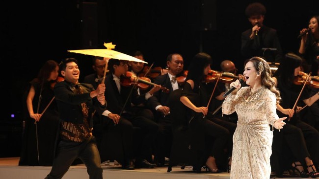 Penampilan Memes dalam konser A Family Symphony yang digelar di Concert Hall Ciputra Artpreneur Theatre Mega Kuningan, Jakarta Selatan, Kamis (19/10/2023).