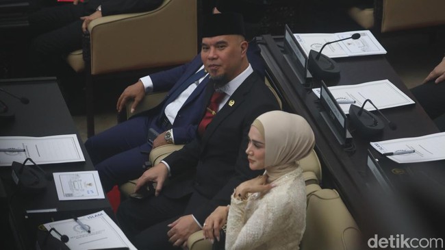 Ahmad Dhani dan Mulan Jameela pasangan yang tidak hanya sukses di dunia hiburan, tetapi juga di dunia politik ini dilantik sebagai anggota DPR untuk periode 2024-2029 dari partai Gerindra. (Agung Pambudhy/detikcom)