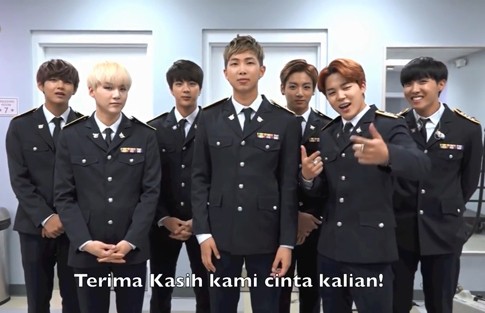 Dalam video itu mereka tampil dalam balutan busana rapi seperti seorang perwira. BTS pun mengungkapkan rasa senang mereka karena bisa bertemu langsung dengan ARMY yang ada di Indonesia.