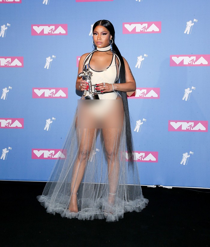 Jakarta - Nicki Minaj tampil sangat seksi di acara MTV VMA 2018 pada Senin (20/8) lalu. Ia tampak mengenakan dress transparan berwarna putih layaknya pakaian renang.