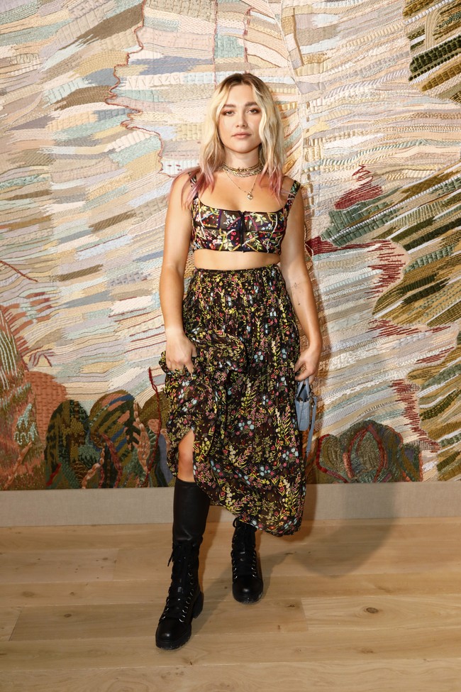 Gaya Florence Pugh di acara Paris Fashion Week 2021. Dia diundang buat event Christian Dior Haute Couture Fall/Winter 2021/2022. (Foto: Getty Images For Dior/Julien M. Hekimian)