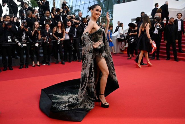 Potret anggun Cinta Laura melangkah di karpet merah Cannes 2023. (Foto: AFP via Getty Images/PATRICIA DE MELO MOREIRA)