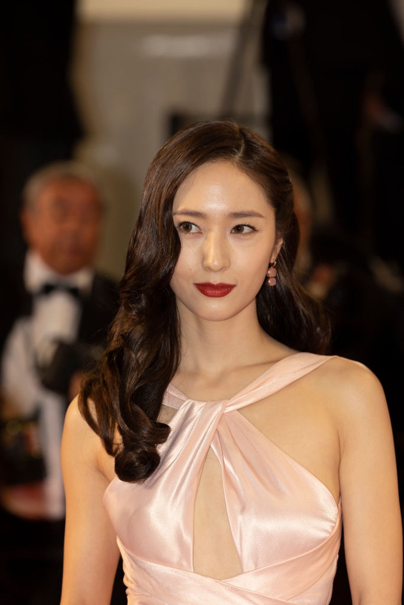 Penampilan Krystal di Cannes amat anggun dengan dress berwarna kalem dan tatanan rambut bergelombang. (Foto: VCG via Getty Images/VCG)