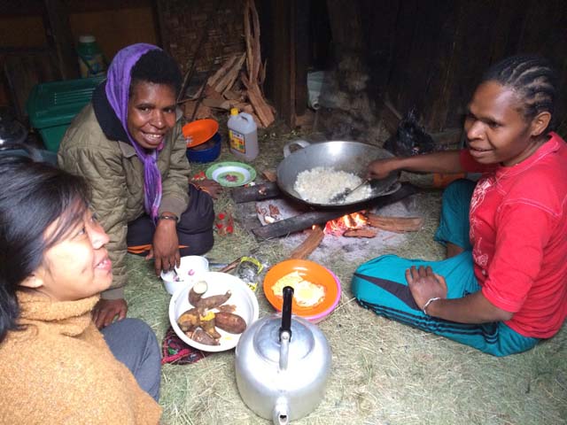 Ubi dan sayuran yang dibumbui garam menjadi makanan pokok sehari hari di Yahukimo. (Dok Kalyana Shira Foundation)