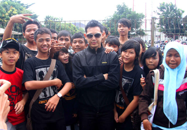 - Bondan Prakoso menyempatkan diri untuk berpose bareng penggemarnya di Studio RCTI, Kebon Jeruk, Jakarta Barat, Senin (12/3/2012).