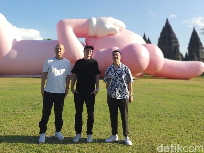 Simak Video "Melihat dari Dekat Patung KAWS Raksasa 'Rebahan' di Candi Prambanan"