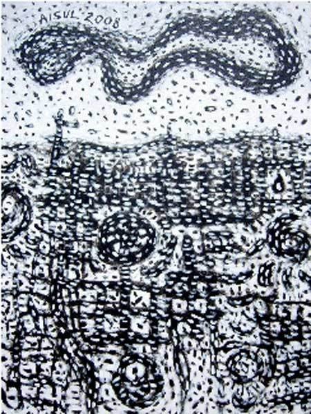 Dalam puluhan lukisan yang dipamerkan tersebut, Aisul memasukkan dominasi hitam dan putih dengan banyak permainan garis serta titik-titik yang menyatu menjadi sebuah bentuk tertentu.